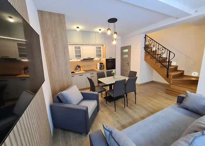 Hike & Ski 什切尔克设有厨房和配休息区,卫星频道平板电视 和电视的客房. 这间公寓靠近Skalite,仅需要步行250米,它附近还有Plac Sw. Jakuba.
